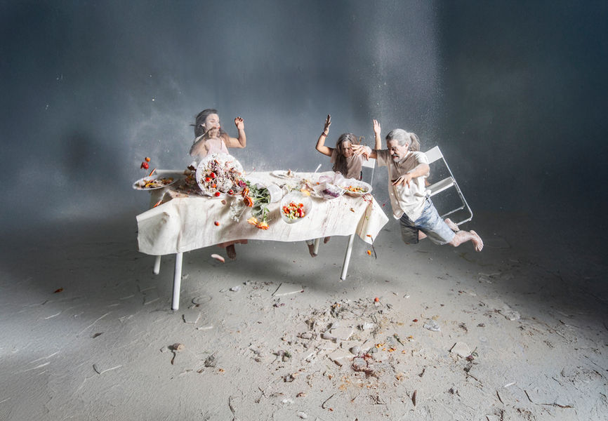 ״הכל בסדר״, עבודת הווידאו החדשה של מירב הימן, שנוצרה במהלך ימי המלחמה, מתארת ארוחה משפחתית שיוצאת משליטה והופכת למופע כאוטי ומרהיב של התפרקות. משפחה בת ארבע נפשות מתכנסת לאחד מהריטואלים הבסיסיים של אכילה משותפת סביב שולחן – רגע אחרון של שפיות לפני שהקרקע נשמטת.